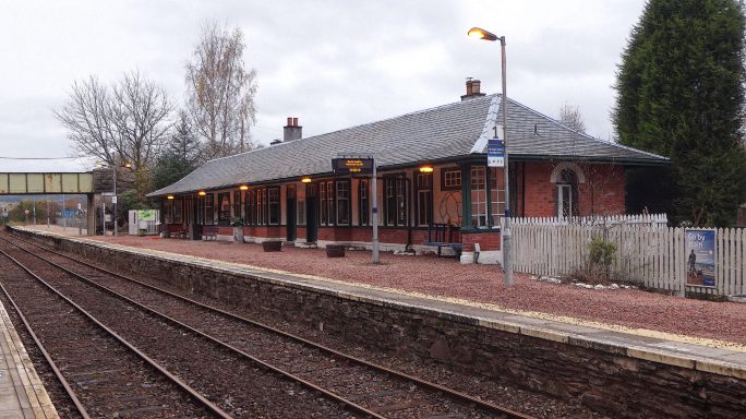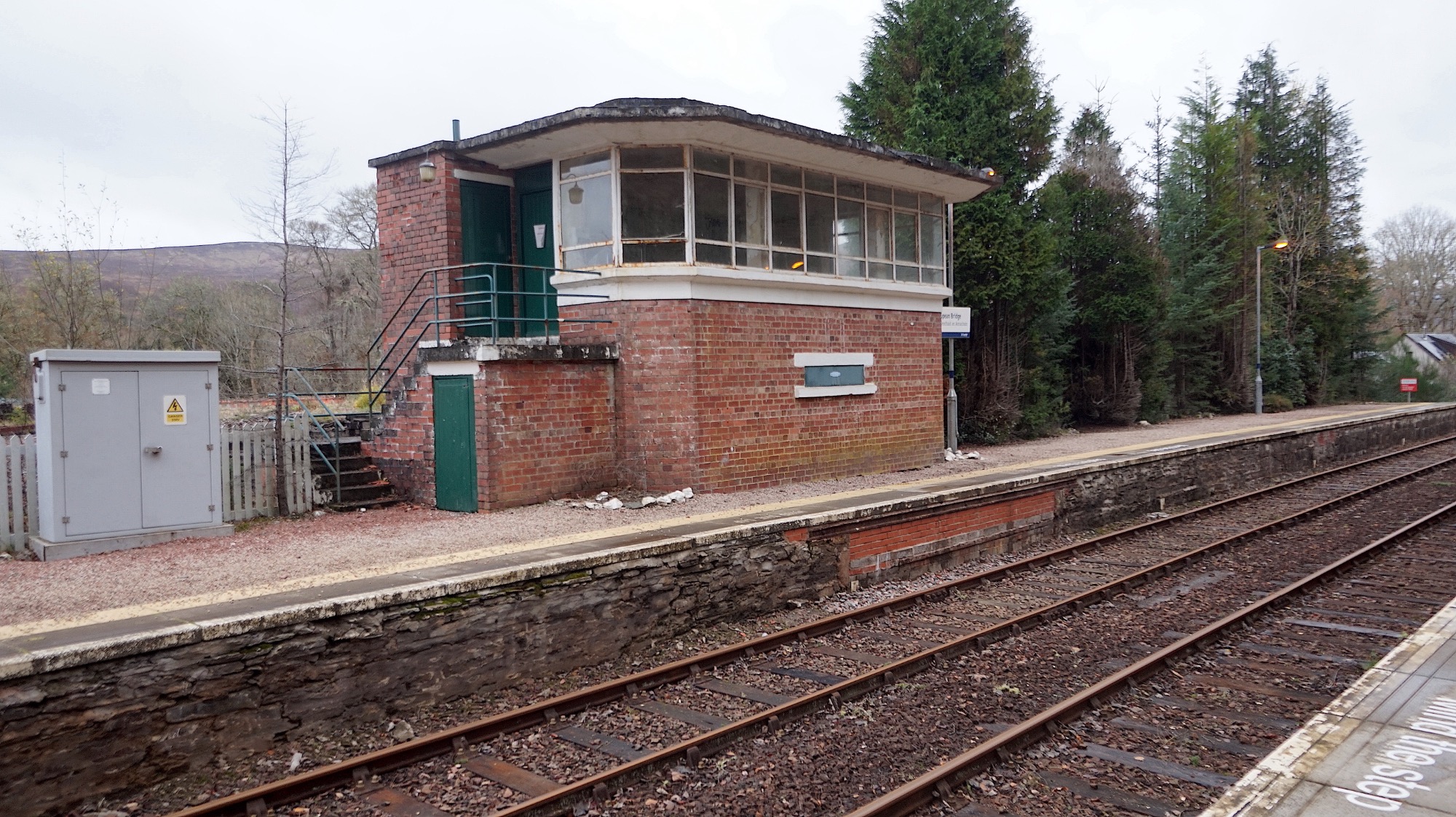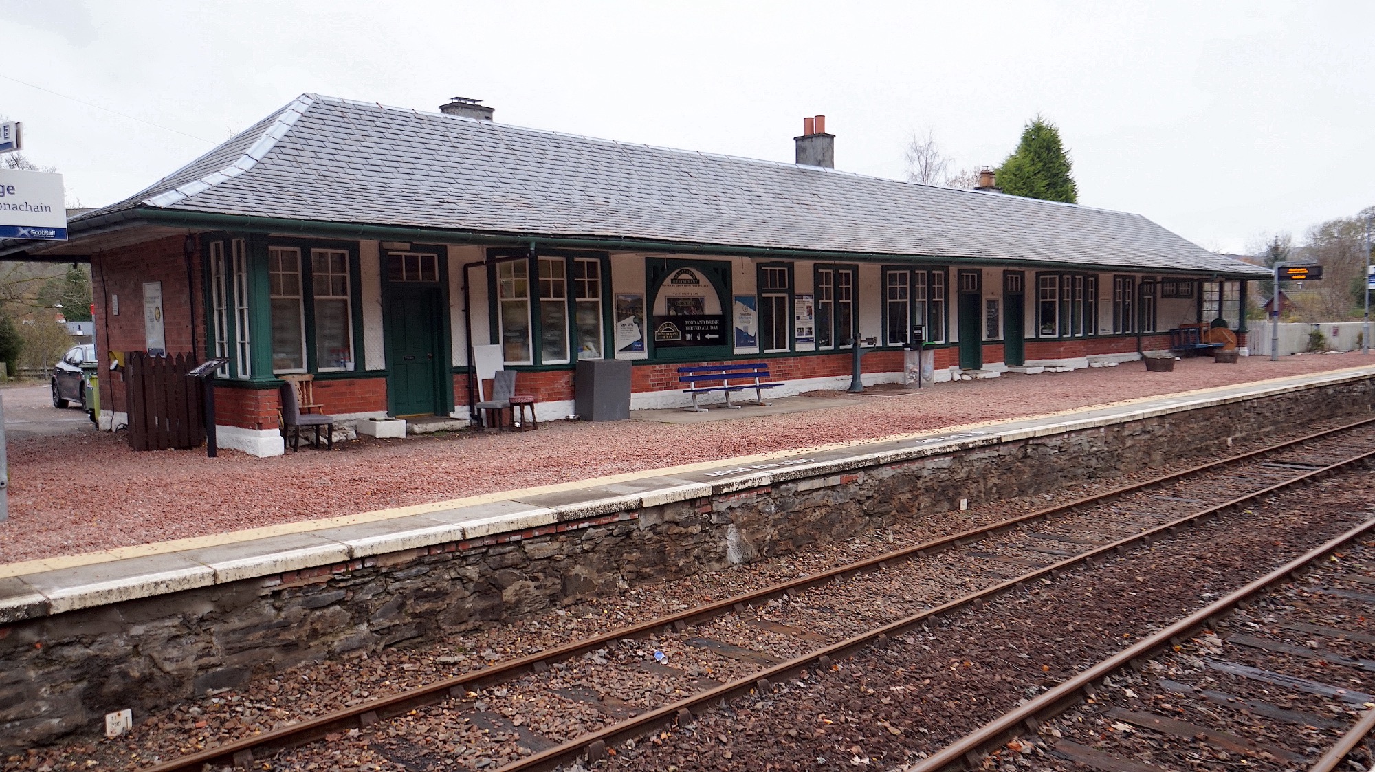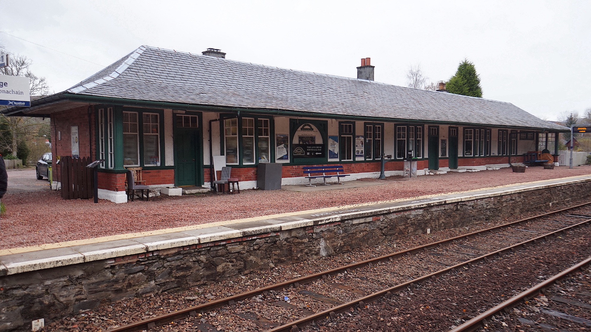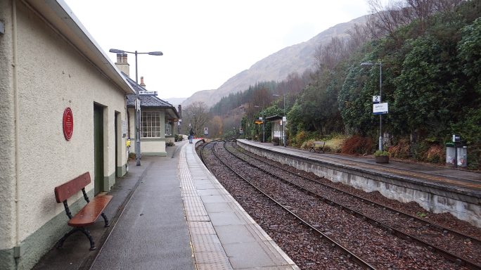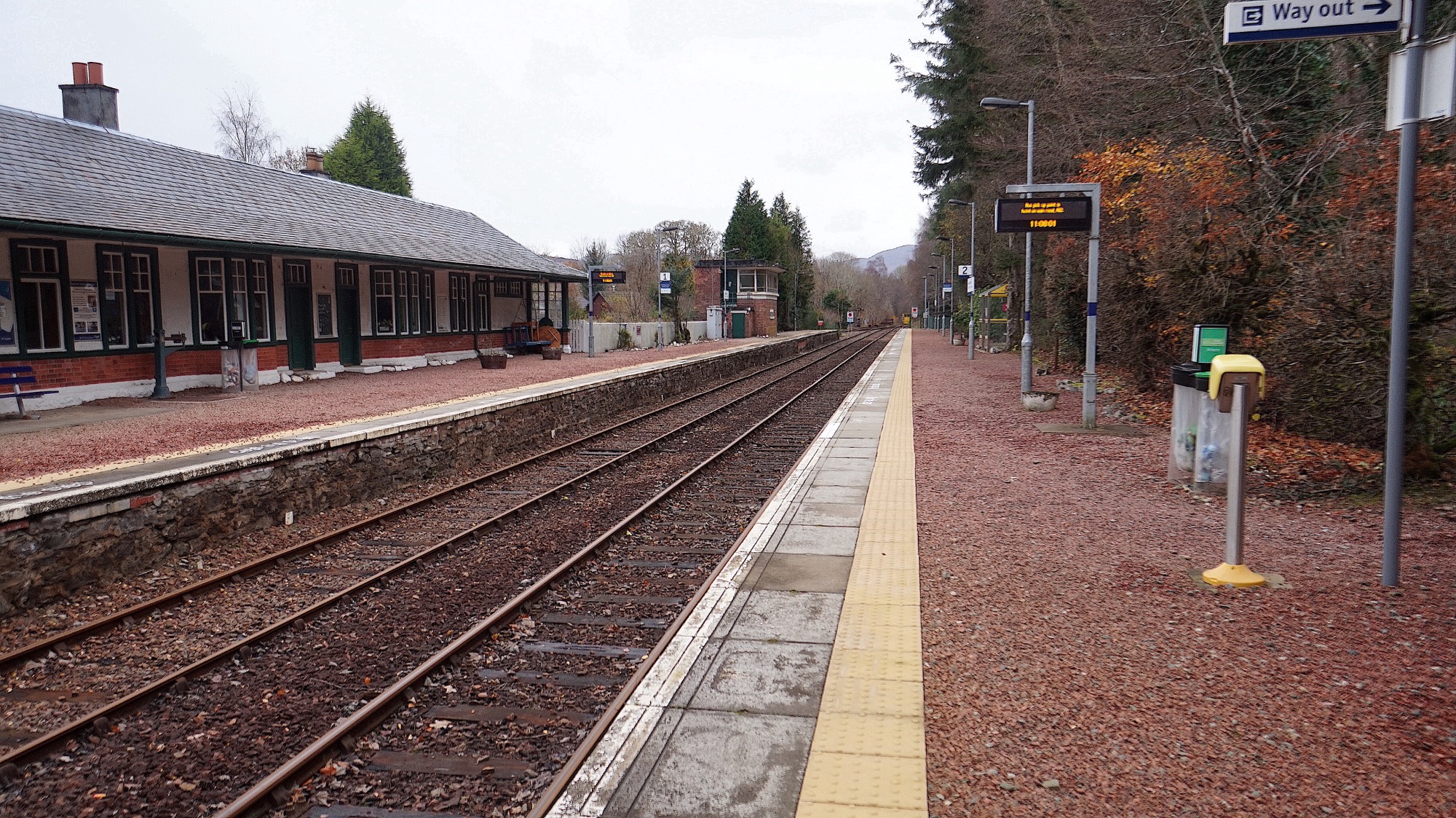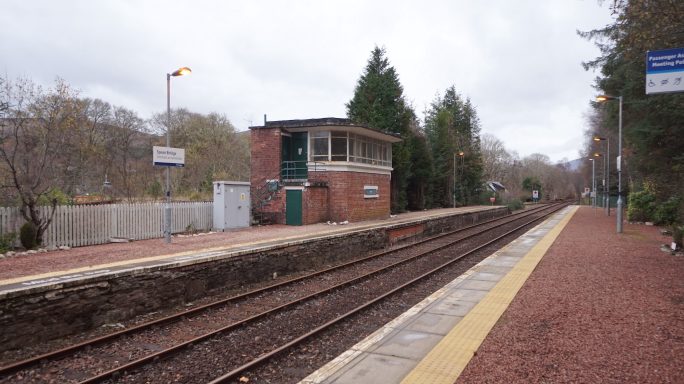 The line is a Single Line with a passing loop between the Platforms this is part of the West Highland Line.